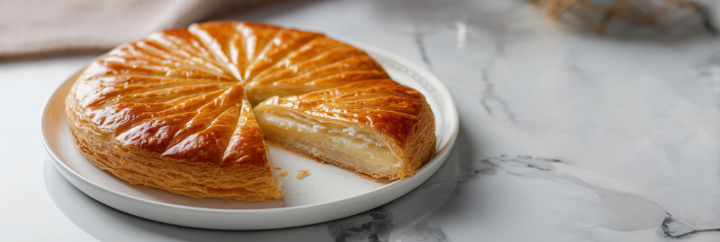 2. Etalez la frangipane sur une feuille de pâte feuilletée, placez la fève à l’intérieur et recouvrez avec la deuxième feuille.
